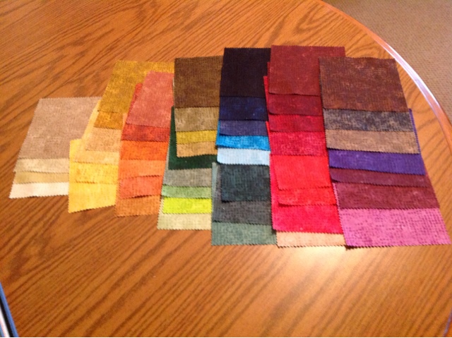 Don't mind the background mess! I needed to put this somewhere that I had a more neutral background to show off the colors. Our comforter was the best option. Here is the color setup that I am considering for the shadow quilt. What do you think?